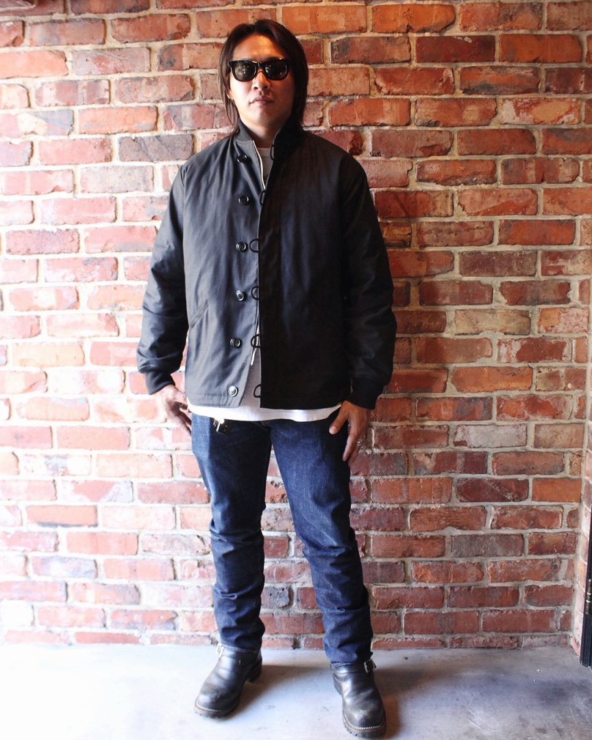 風合いのある当時物の生地をサンプリングし、ハイウォッシュ加工を施した100%ハイカウントツイル生地を採用。