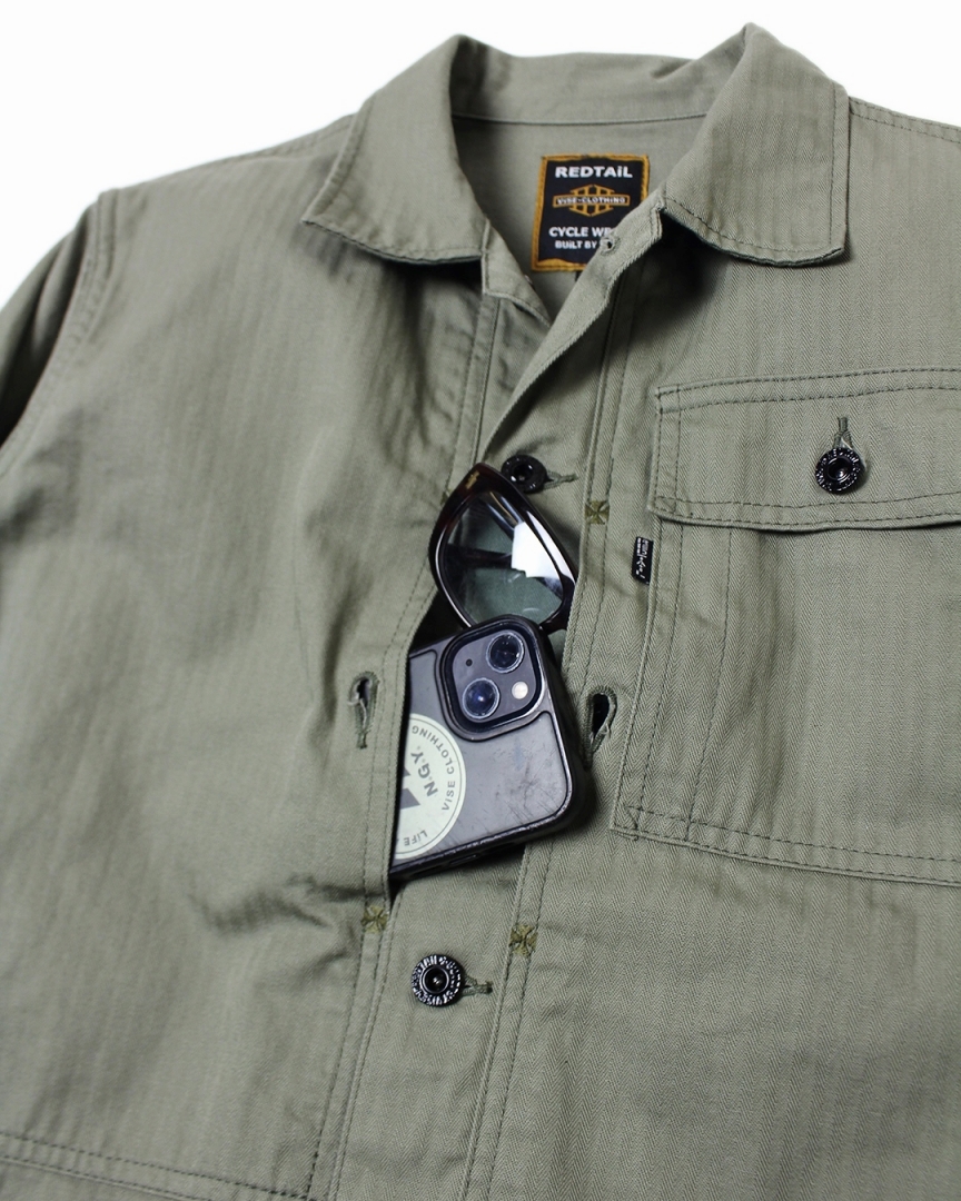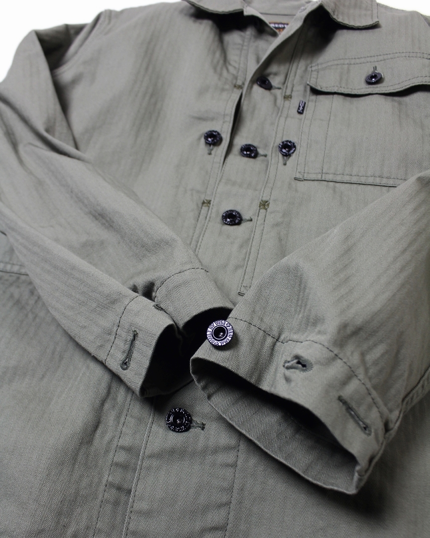 ■高い耐久性と独特の経年変化そして着込むほどに増す風合いが特徴的なHBT(ヘリンボーンツイル)生地を使用したシャツジャケット。カテゴリ一覧